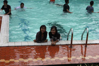 Pas kita udah selesai makan dan kita mau nyebur ke kolam ternyata anak-anak cewek yang lain pada udahan. Akhirnya kita memutuskan untuk berenang besok pagi.